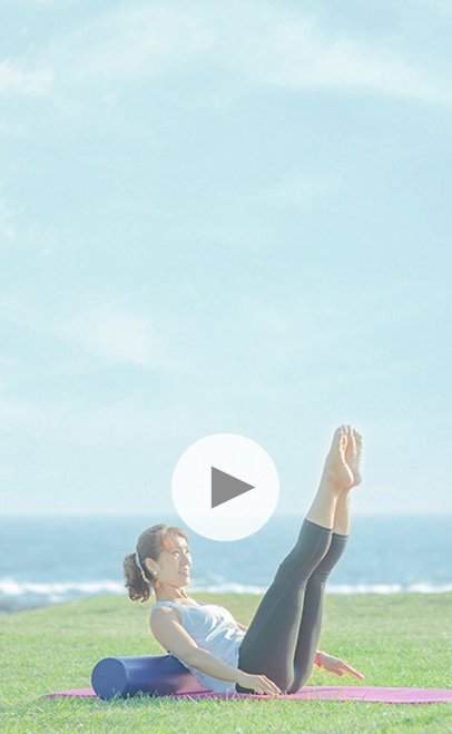 ストレッチポール®の上に仰向けに乗り、エクササイズを行うときの基本姿勢を覚えましょう。多くのエクササイズで、まずこの姿勢をとります。